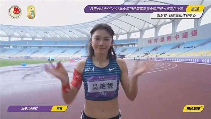 2025全国田径冠军赛暨全国田径大奖赛总决赛在山东日照举行。9月27日上午,在本次赛事女子100米栏项目预赛中,四川运动员吴艳妮以12秒99预赛第一晋级决赛,赛季第2次打开13秒。
