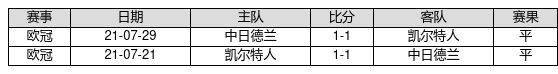 中日德兰 VS 凯尔特人两队近10年的交战次数为2场,中日德兰0胜2平0负,赢球概率为0.0%,平局概率为100.0%,输球概率为0.0%。