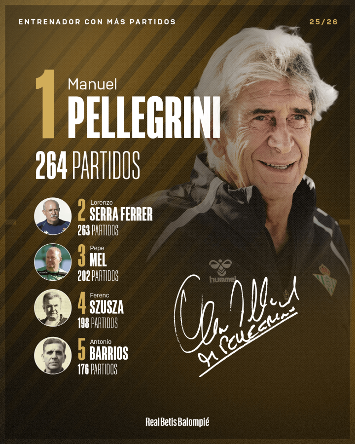 他正式超越了洛伦索-塞拉-费雷尔,成为了贝蒂斯队史执教场次最多的主教练。