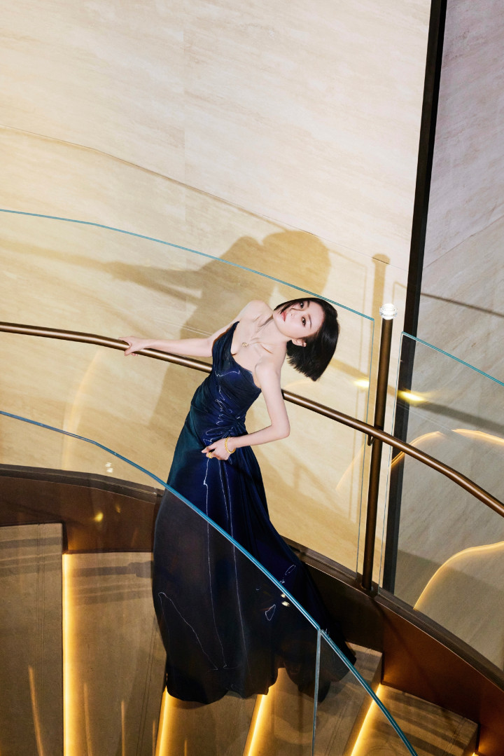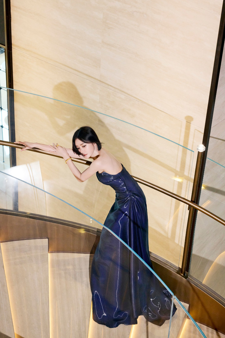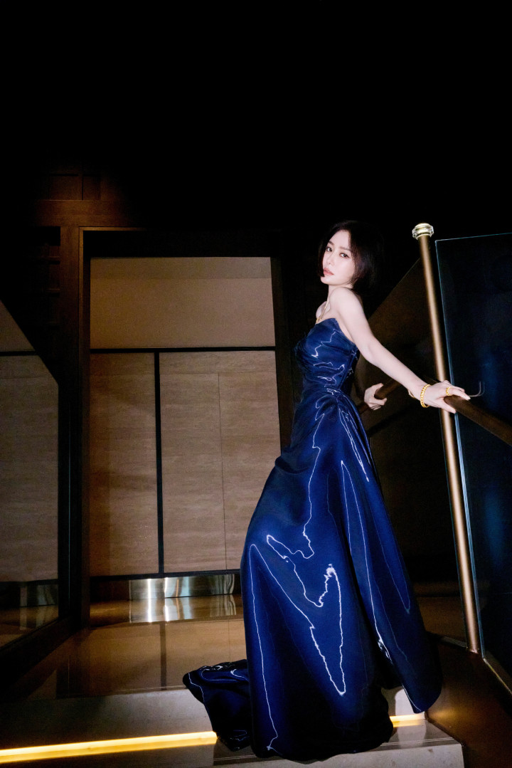 秦岚是冰川解冻成的吧!蓝裙裹星月登阶,回眸冻住时空